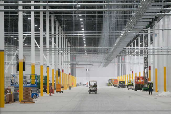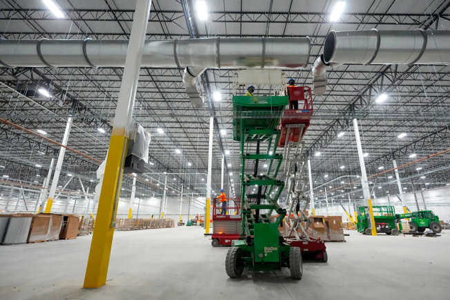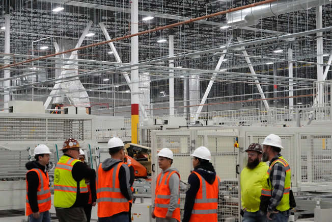 Construction subcontractors for ARCO work to build out the Illuminate USA solar panel factory in Pataskala. The the company will eventually employ more than 1,000 workers on eight assembly lines in the 1 million square foot building.